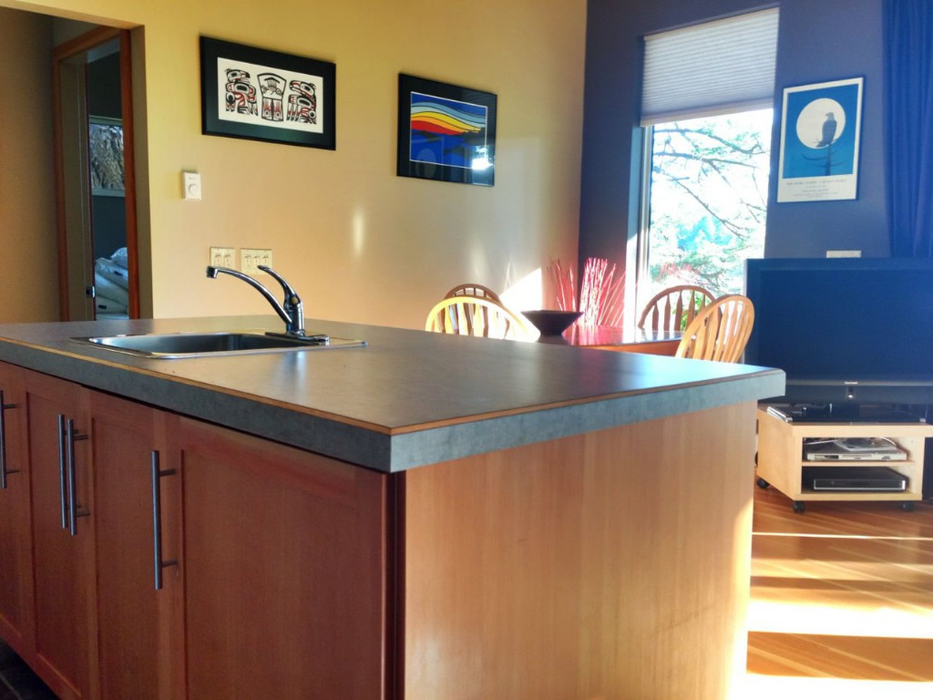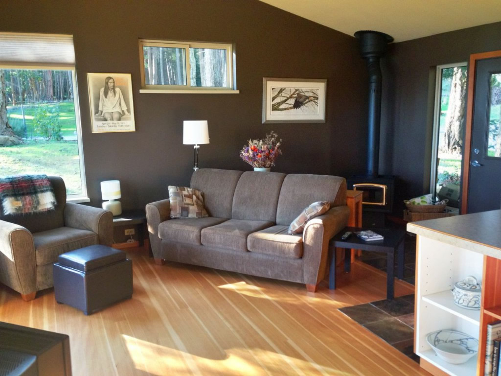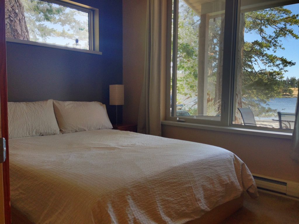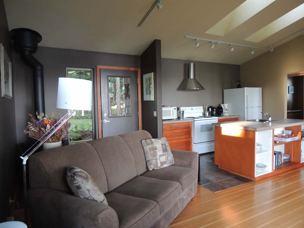 We have tried in earnest to equip and furnish our cottage as we would like to find in our travels. We enjoy artwork and contemporary design, the grounds are a site for sculpture, the walls are for our love of West Coast art, both for our home and in the cottage. We like the warmth of a wood fire, the comfort of a place to sit and read with feet up, but need to see the ocean close at hand. That comfort, relaxation and views of the sea and our abundant wildlife bring us and our guests hours and days of enjoyment.